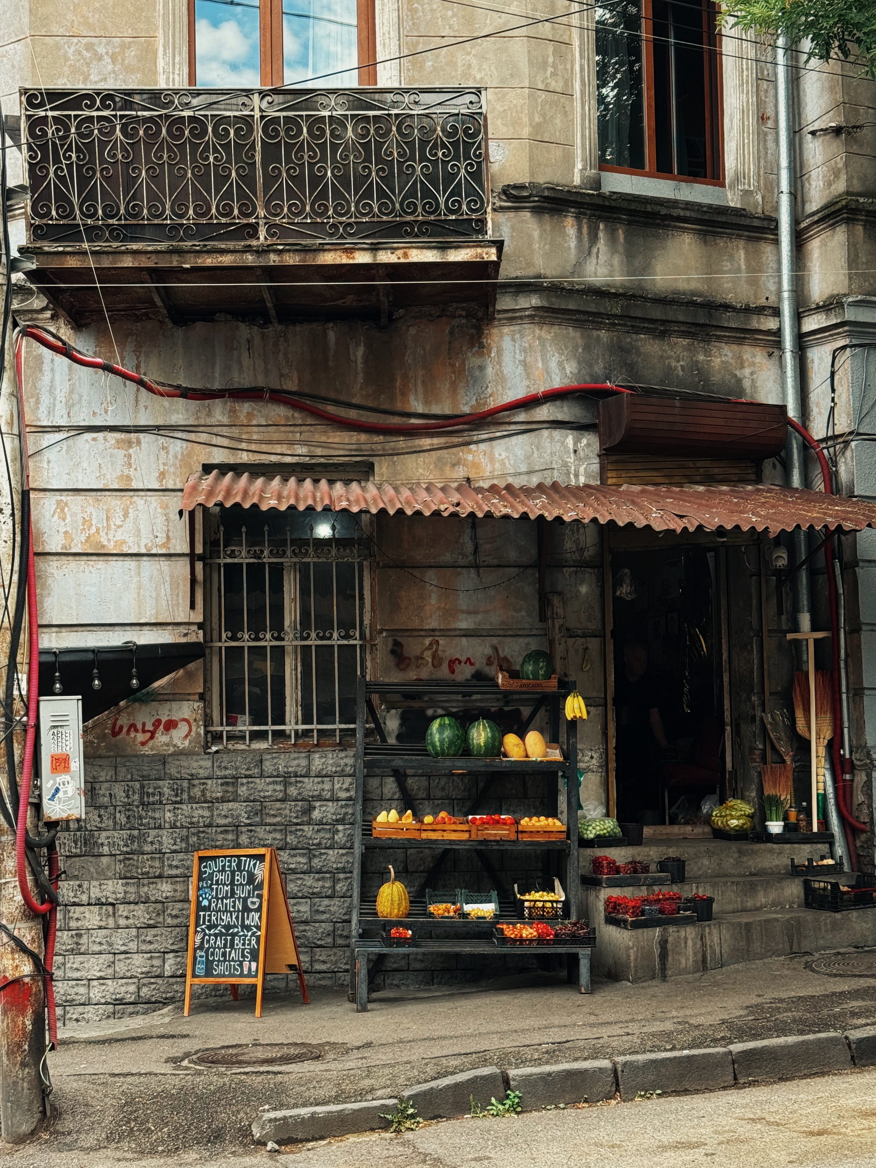 Walking around Tbilisi, there’s a palpable energy, like a city on the cusp. Lush greenery twines around crumbling façades, young people smoke on corners, wine bars spill into the street, graffiti and ripped posters for upcoming art shows line the sidewalks, protests spark in the square each night, and it feels like there’s a thrumming underground party somewhere, a block away