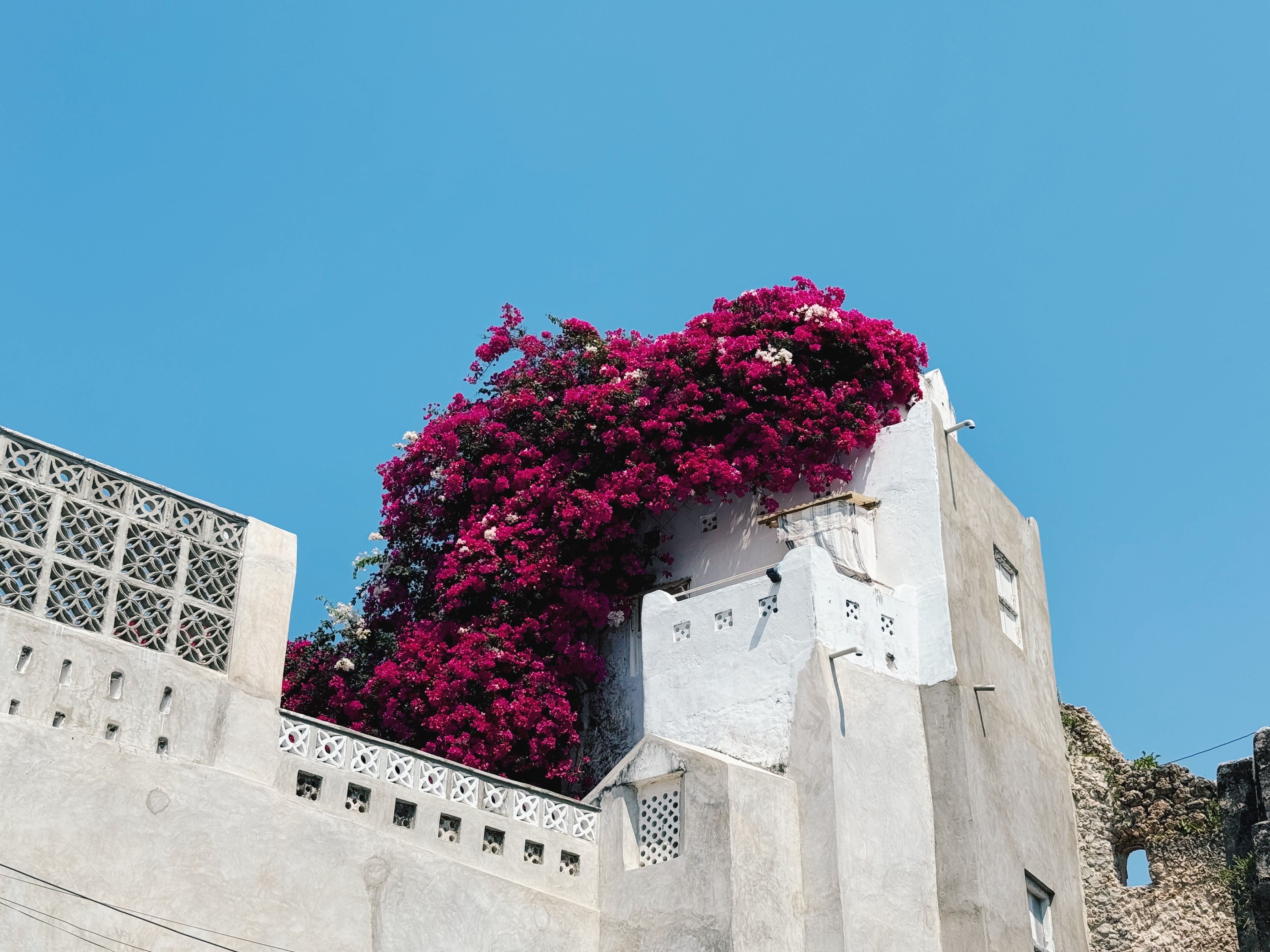 The town swayed into focus, and we docked on the wide waterfront promenade. Slip into an alleyway, though, and enter a different world: a maze of unnamed cobblestone streets and Swahili-style buildings made from locally harvested coral, twisting, looping, and zig zagging through cool shade and dazzling sunlit passageways. There are no cars on the island – the only traffic jams are of the donkey variety (watch where you step!). You might turn a corner just as the distant call to prayer rings out, and encounter a cascade of the brightest bougainvillea, and you just might be transported.