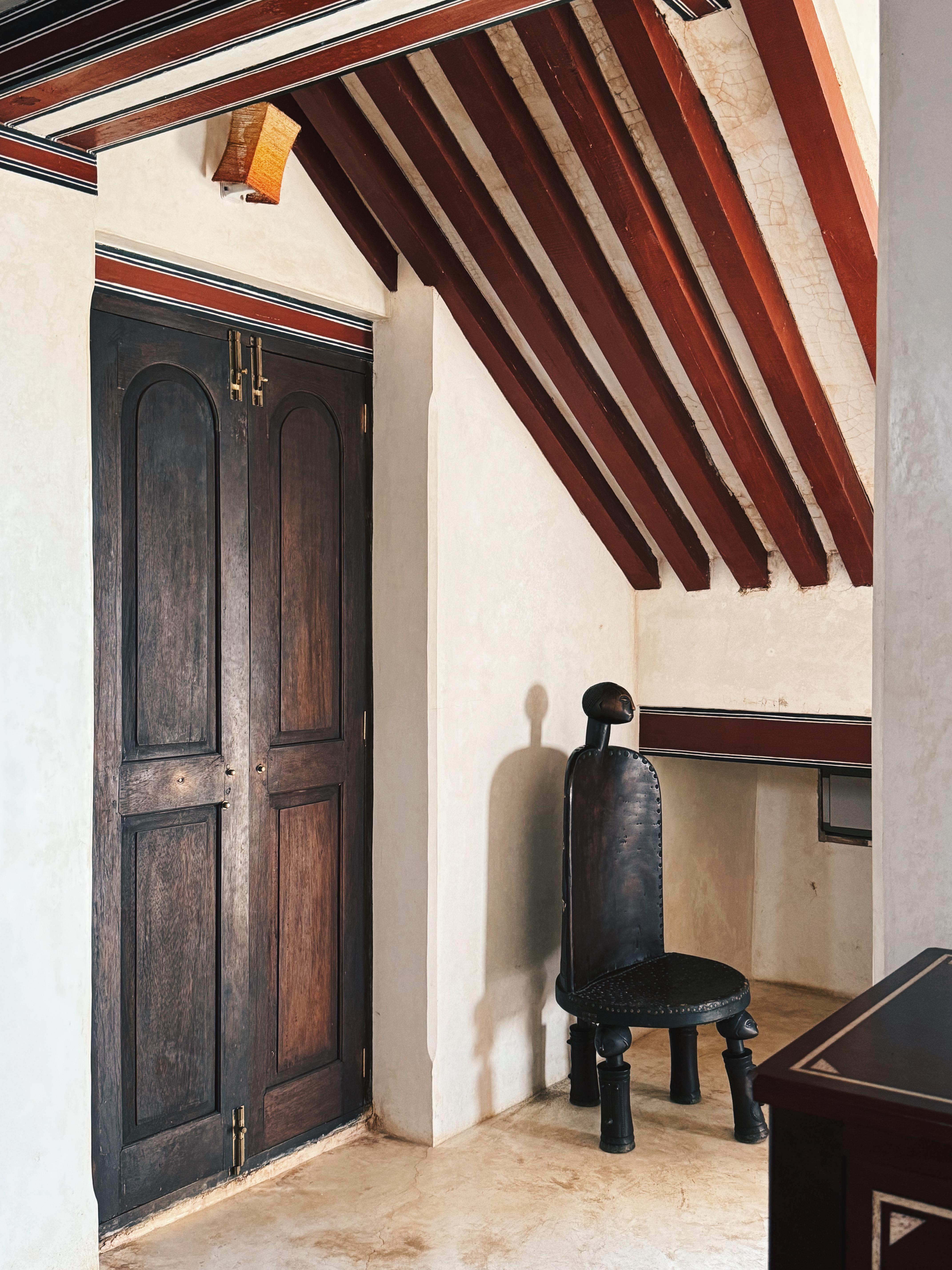 Lamu waits at the end of a romantic journey to the edge of, then off, the continent. We drove through the urban choreography of Nairobi to Wilson Airport, where a fleet of single- and twin-propeller planes waited on the tarmac just outside the single-room terminal. We took one of those twin-prop planes to Manda Airport via Safarilink Airlines, where Safari, the manager of Andavelo House, met us with a bright blue boat to take us across the channel to Lamu island.
